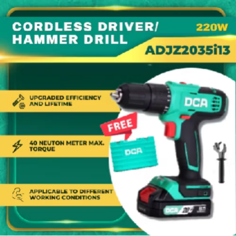 DCA ADJZ2035i13 Cordless Driver/Hammer Drill 220W | Powerful Motor for Wood, Metal