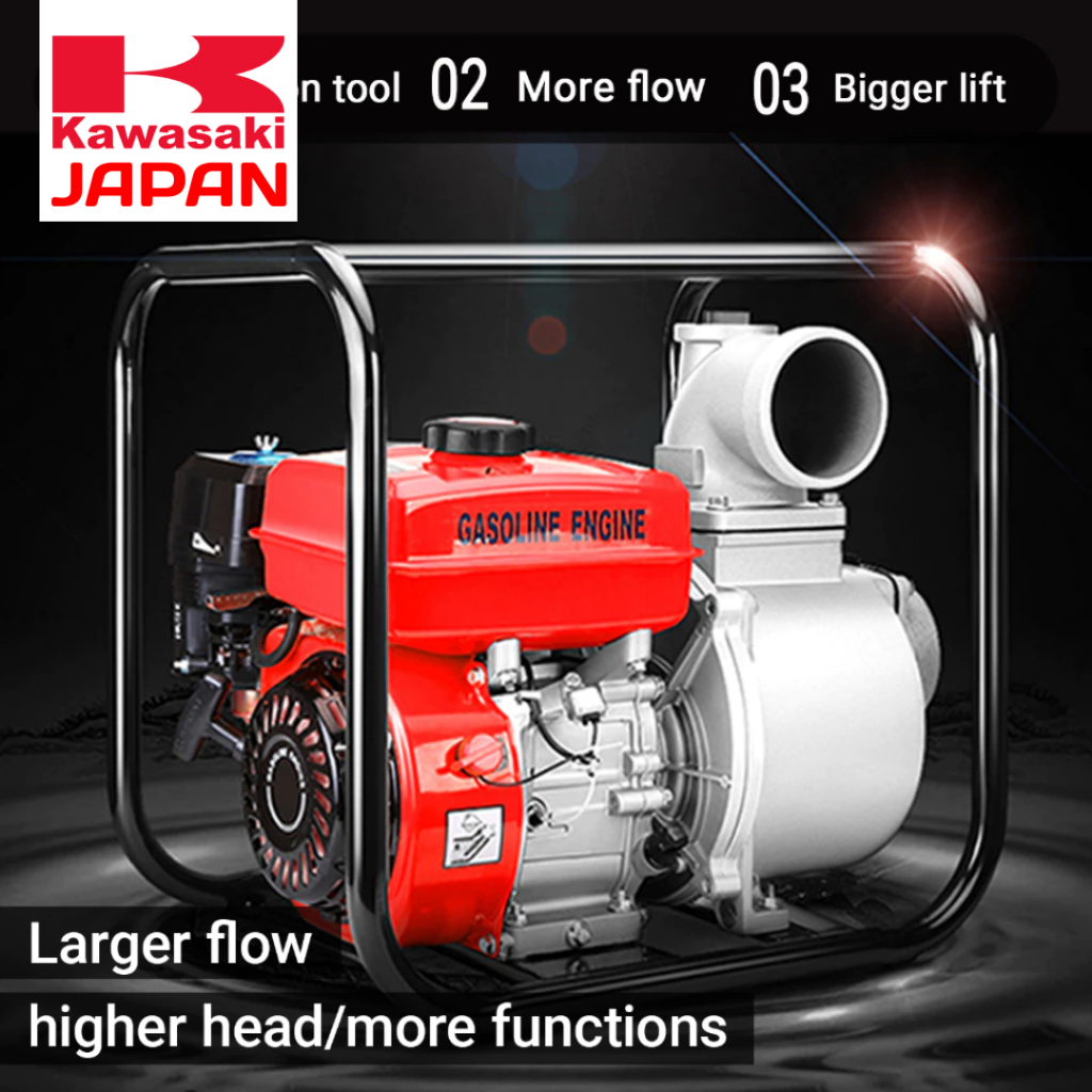 KAWASAKI 4-Stroke Gasoline Engine Water Pump 2x2 3x3 inch High-Lift 8.5HP JAPAN